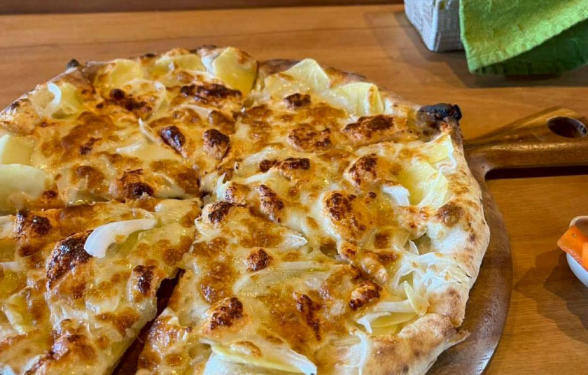 釜で焼き上げる本格ピッツァです。自家製ピクルスがつきます。