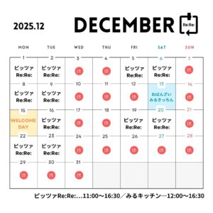 \12月のスケジュールです/ 寒さがぐっと深まり、街の灯りも温かく感じる季節になりました❄️年末ですが、工房Re:Re:もいつものゆるやかな雰囲気の中で営業していきます。 WELCOME DAY 12月15日(月)開催! […]