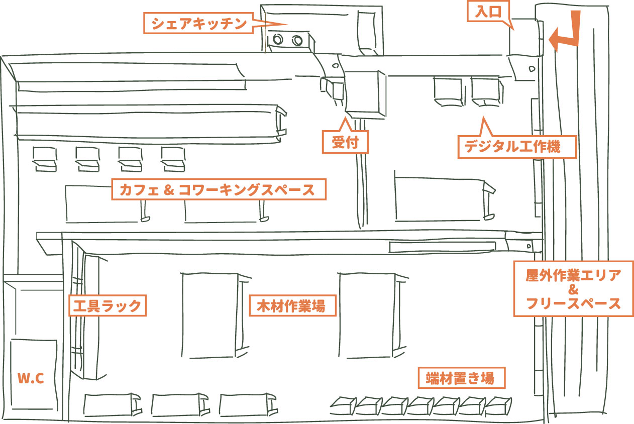※工房・キッチンの使用については別途ご相談ください。基本的には工房・カフェ利用が優先となります。